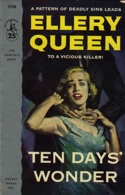 God dies and Ellery retires: Ten Days’ Wonder is a slightly different Queen novel. It is the first last Ellery Queen Ten Days Wonder 3novel [followed by The Finishing Stroke (1958) and A Fine and Private Place (1971)]. In this third Wrightsville novel, the cousins delve deeper into small town life, expanding on the characters and events of the previous novels, while exploring the manipulative powers of people acting like an all-powerful, charitable yet vengeful god. We also learn that Wrightsville is in New England, perhaps near New Haven, Connecticut, or, as the novel calls it, Connhaven.