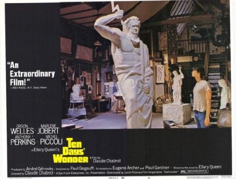 Oh, and as a postscript: the novel was turned into a movie starring Anthony Perkins and Orson Welles in 1971.  Ellery Queen, the character has been replaced with a “Paul Regis.”  Heres the IMDB link, and a place to see the film.Ten Days Wonder Movie